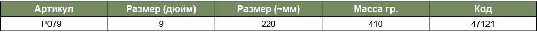 Многофункциональные пассатижи "Р079" увеличенного до 9” (220 мм) размера. Изготовлены из хромованадиевой стали с рабочими поверхностями, закаленными ТВЧ до твердости 60-64 HRC. Инструмент снабжен расположенным на внешней стороне шарнира дополнительным приспособлением для резки проволоки с пределом прочности до 100 кгс/мм², диаметром 2-3 мм и устройством формовки и обжима клемм - в корневой части рукояток.